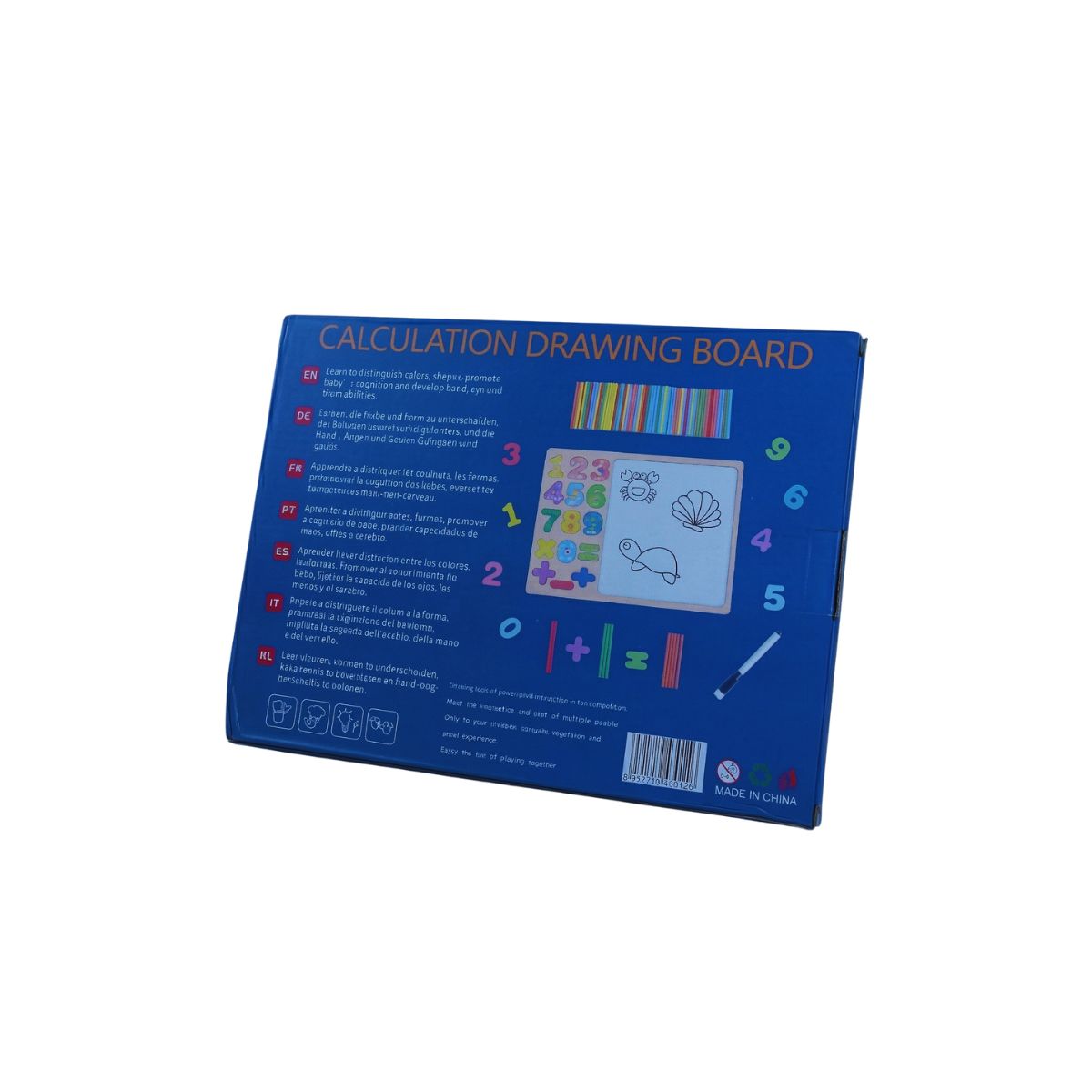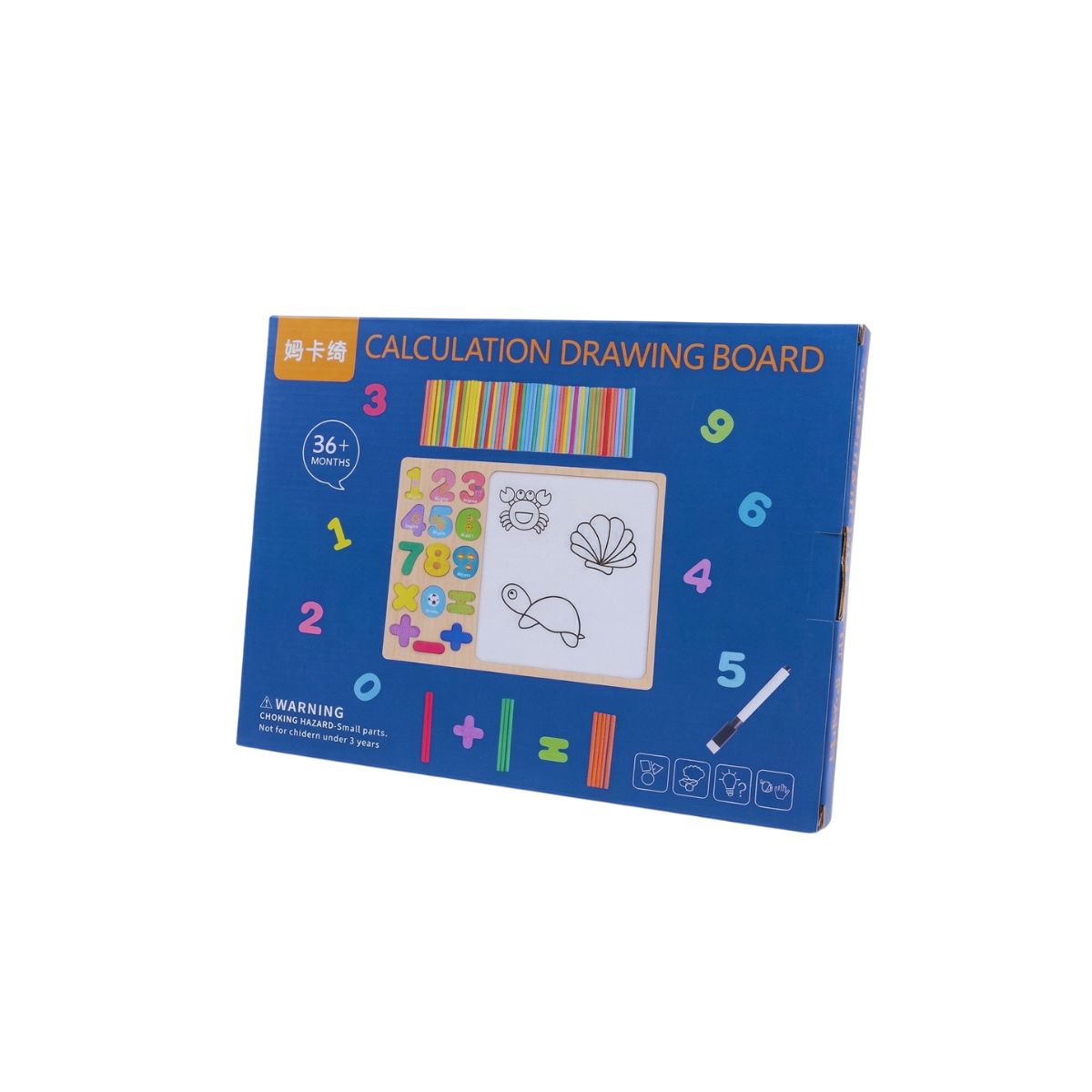 Make learning numbers and expressing creativity seamless with this versatile calculation and drawing board. This comprehensive educational set includes a sturdy wooden base with a built-in whiteboard, brightly colored wooden numbers from zero to nine, basic mathematical symbols, a set of vibrant counting sticks, and a dry-erase marker.