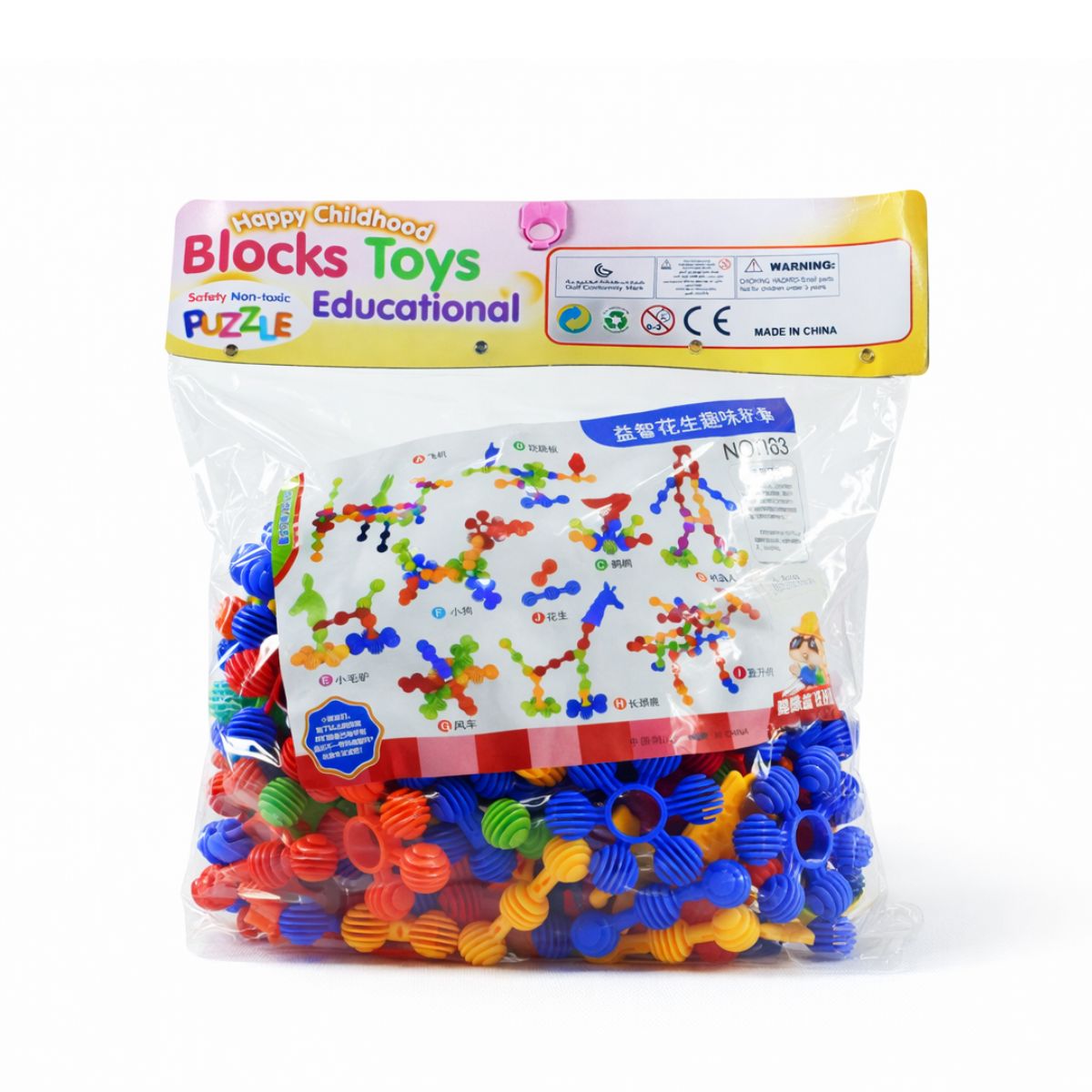 Introduce your child to endless creative possibilities with this vibrant set of interlocking building toys. Packaged in a convenient clear bag, the set contains uniquely shaped, ribbed spherical pieces in bright red, blue, green, yellow, and orange. These pieces are designed to snap together easily, allowing young builders to create sturdy 3D models right at the play table.