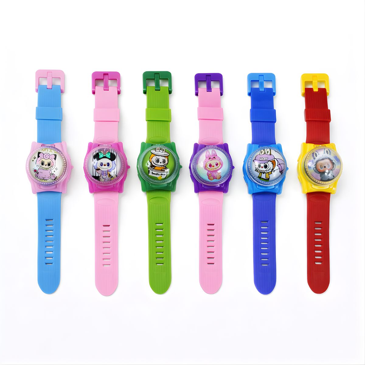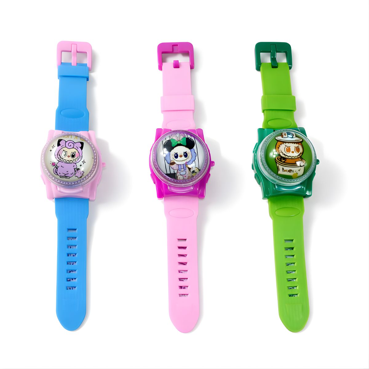 The Labubu Rotating Watch is a child-friendly toy watch made with a soft, adjustable strap and a rotating character dial. Children can turn the dial to enjoy the playful movement and character designs while wearing it comfortably on their wrist.